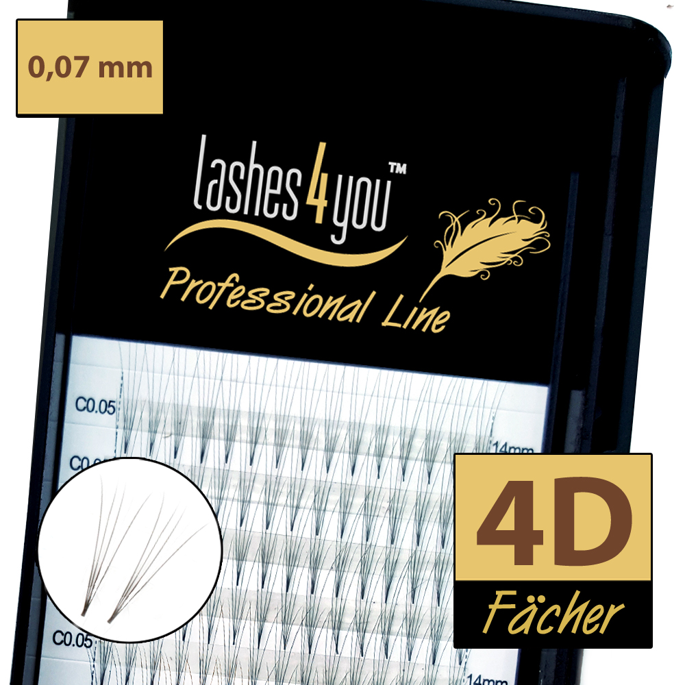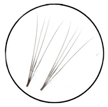 Eine Fächer (Flare) hat 4 gleich lange Wimpern und wird auf eine einzelne Wimper appliziert.
